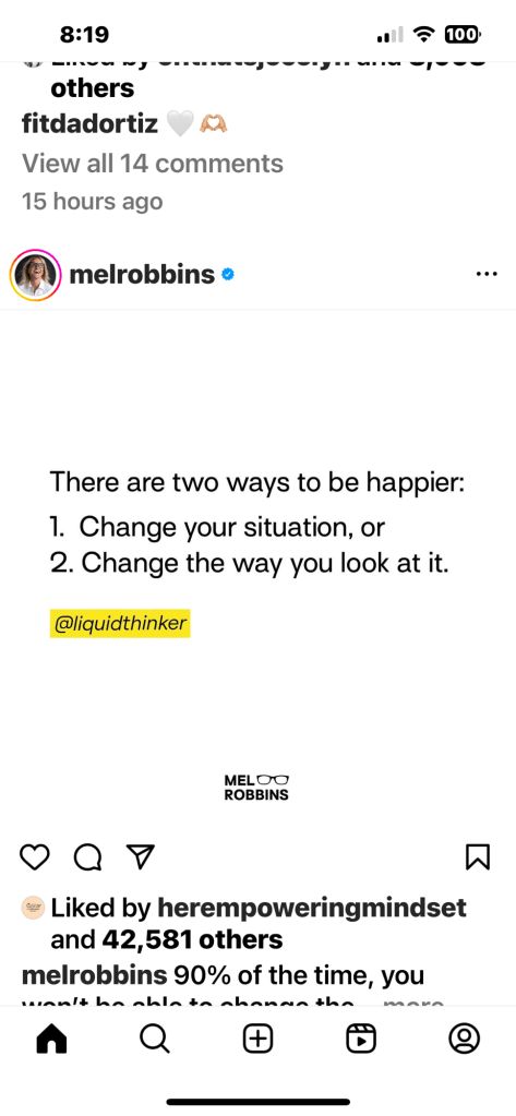 Question: You have a choice. Change your situation or change the way you look at it. Which do you choose?